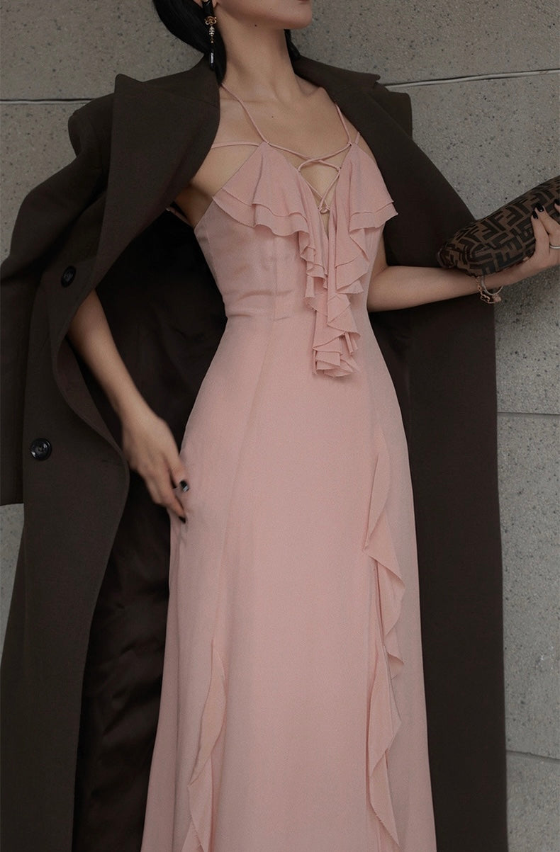 Tailored to flatter, the dress skims the waist and falls into a wide A-line shape that’s both elegant and forgiving. A side slit adds a subtle flash of leg, while the generous skirt volume keeps the movement romantic and soft.