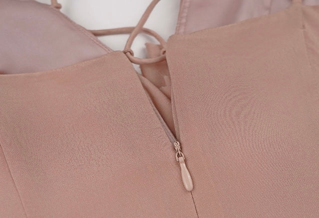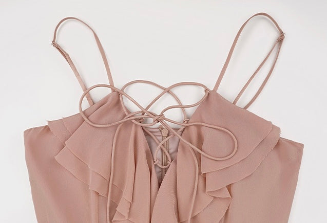 The soft V neckline is edged in cascading ruffles, with dainty tie straps you can adjust for just the right depth. Ultra-fine shoulder straps with hidden adjusters add a barely-there finish that gently contours the upper body without taking away from the flowing silhouette.