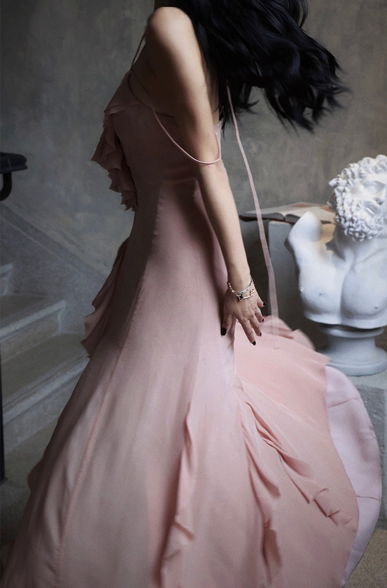 Available in a gentle, romantic shade of soft lotus-pink, ‘Rose Petals Dancing In The Night’ brings together innocence and confidence in one effortlessly graceful sweep.