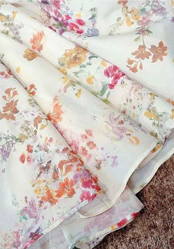The skirt is crafted using a 45-degree bias technique and multi-panel construction, where precisely distributed darts allow the fabric to fall into soft, radiant folds that expand beautifully as you walk. A rolled hem finish keeps the edge light and airy, reducing bulk and letting the silhouette feel effortless rather than heavy. Unlike standard hard-net finishes, the integrated hem structure ensures the lower skirt holds its shape gracefully while maintaining fluidity.