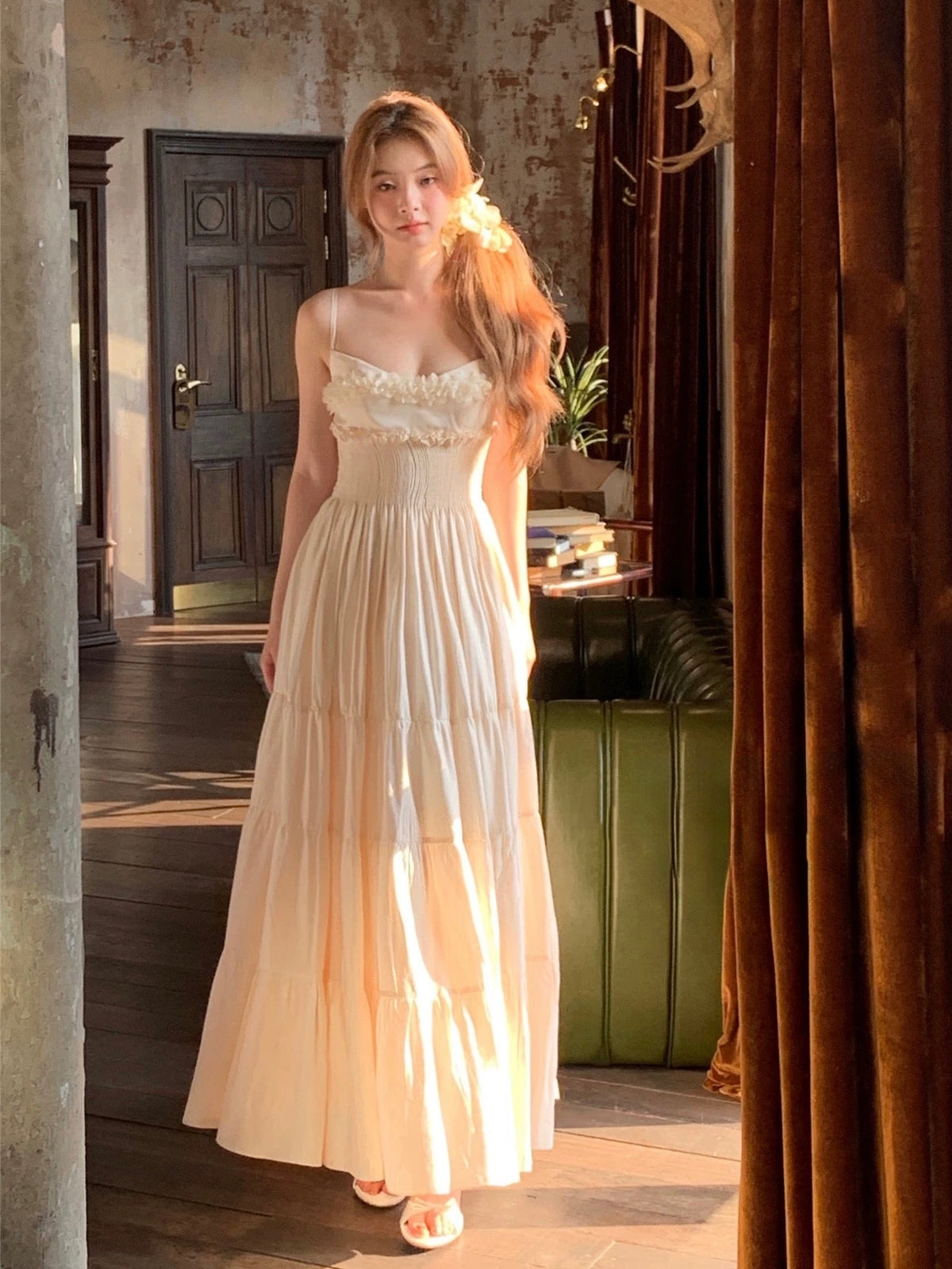At the waist, the dress boasts a beautifully designed smocked detailing created with resilient fishline—this innovative technique involves a coordinated effort of machinery and multiple artisans to gather the fabric into graceful pleats. After the fabric is gathered, skilled hands smooth the pleats into our ideal width, ensuring a flawless finish that accentuates the waist beautifully. The fishline is then knotted securely to keep everything in place before final stitching brings this breathtaking piece to life.